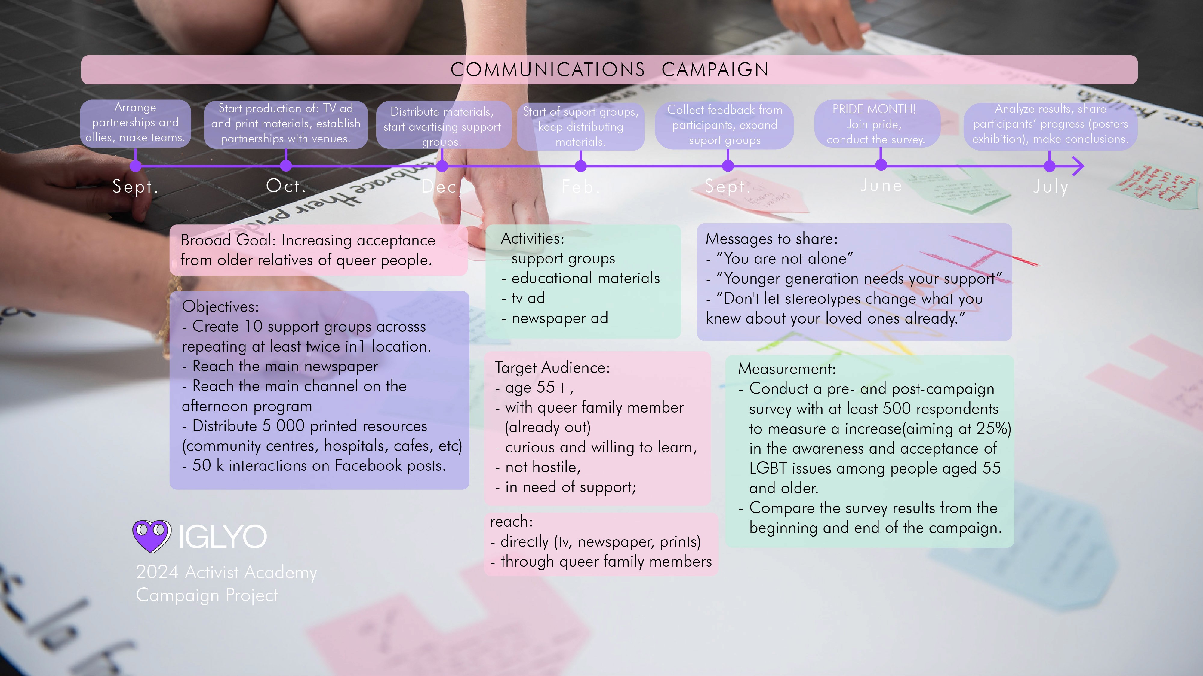 Activist Academy campaign project to help establish understanding between queer people an their senior family members by providing education, support groups and therapy.